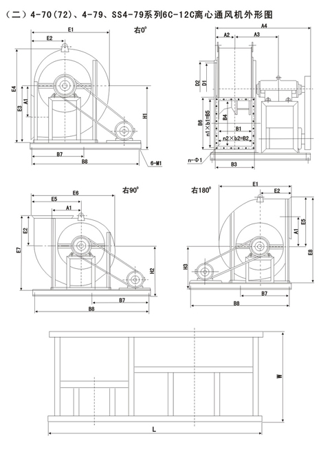 4-72型不銹鋼離心風機風量:930~154000m3/h,風壓170~2950Pa;4-79型通風機共20種機號,風量1100~438000 m3/h,風壓230~3320Pa,用戶可根據不同參數選擇。 本系列風機廣泛應用于各類大中型工廠和高級民用建筑、大型廣場輸入和輸出氣體的室內換氣通風。如客戶有特殊要求,本公司則可以根據用途不同,選擇不同材料制作成防爆、防腐、耐高溫型風機,以滿足廣大用戶的需要。